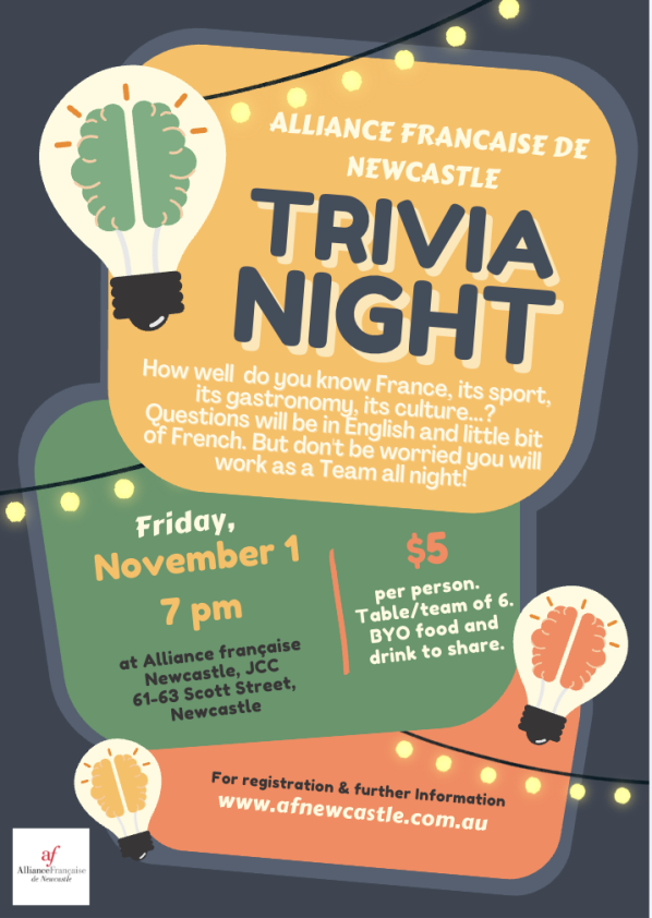 Where: Alliance Française Newcastle, 61-63 Scott Street, Newcastle